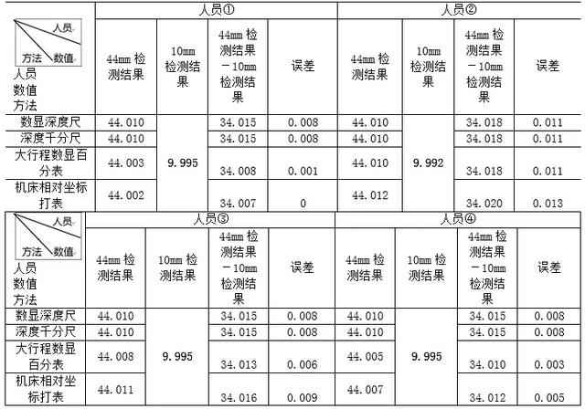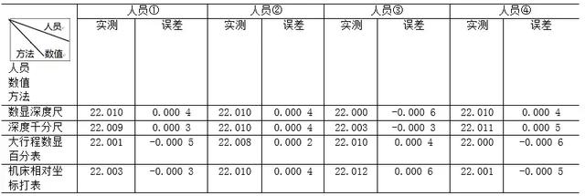 工件加工过程中,操作人员采用量具进行手动检测均会产生人为误差。此次加工特意找了四位经验丰富的人员进行检测,采集数据,以求尽量减少人为误差。
