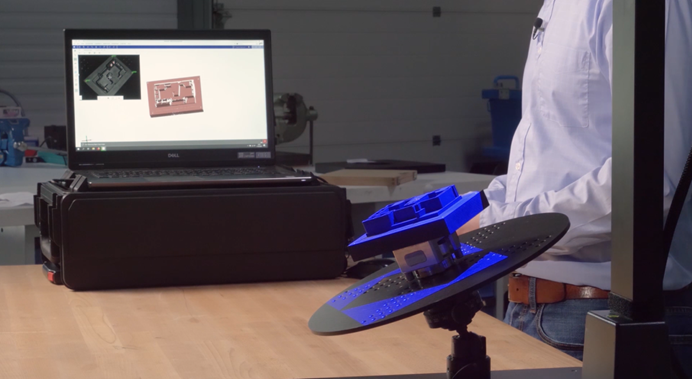 测头可安装在桌面支架上,以此满足扫描此类高精密零件所需的稳定性,桌面支架既可以作为手动扫描解决方案也可搭配自动化转台作半自动扫描